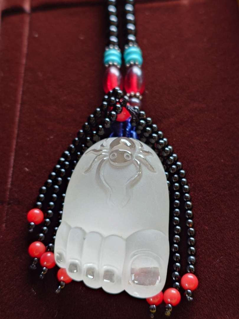足にクモの形のオブジェを身に着けることによって、