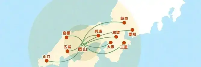 三石運輸では、主に岡山県から東海地方や山口県方面への配送を行っています。